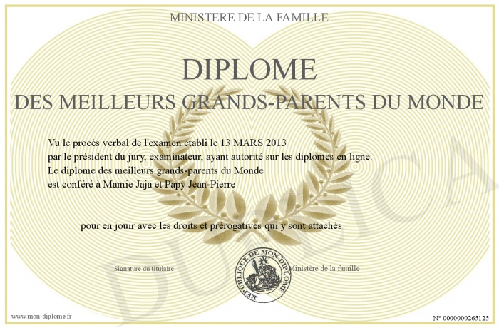 Envoyez par email votre diplome des meilleurs grands-parents du Monde personalisé