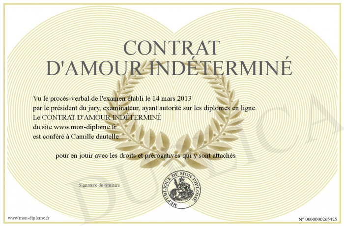 Envoyez par email votre CONTRAT D'AMOUR INDÉTERMINÉ personalisé