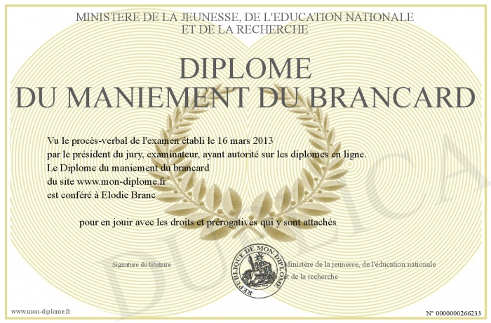 Envoyez par email votre Diplôme du maniement du brancard personalisé