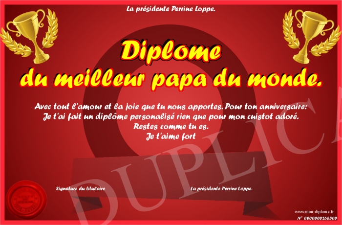 Envoyez par email votre Diplôme du meilleur papa du monde. personalisé