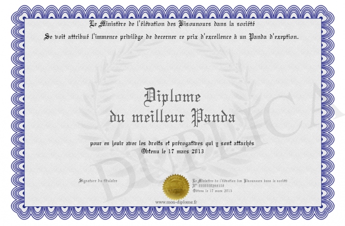 Envoyez par email votre Diplôme du meilleur Panda personalisé