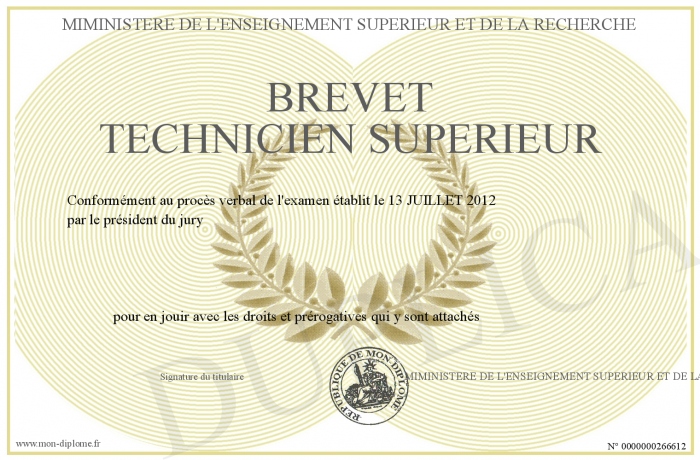 Envoyez par email votre Brevet Technicien Supérieur personalisé