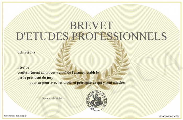 Envoyez par email votre brevet d'etudes professionnels personalisé