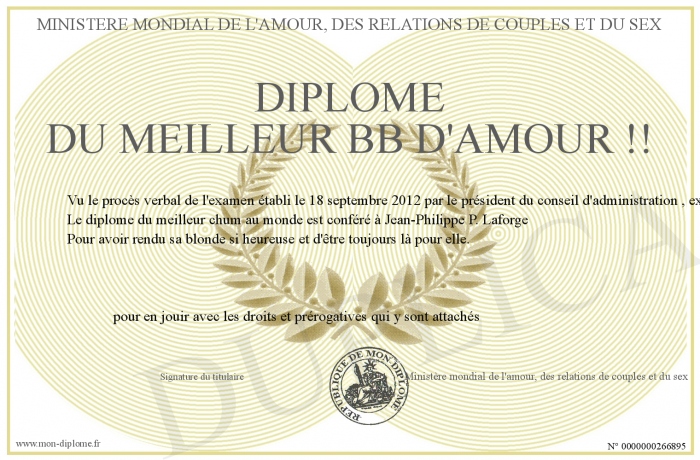 Envoyez par email votre Diplôme du meilleur BB D'AMOUR !! personalisé