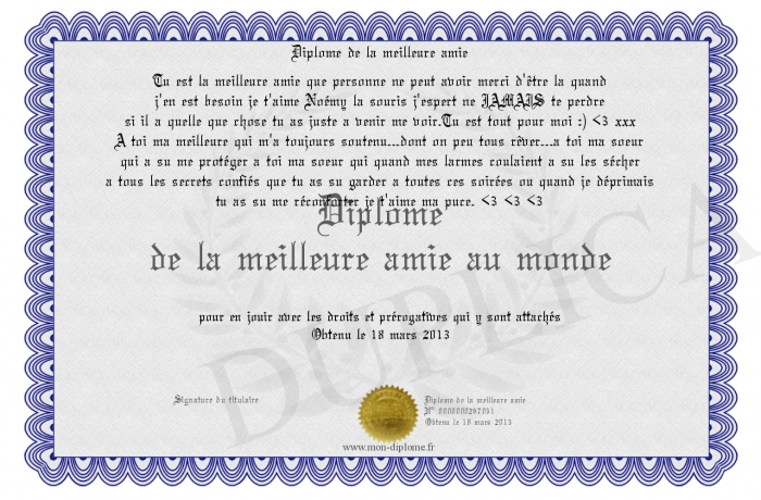 envoyé par le Diplome de la meilleure amie !