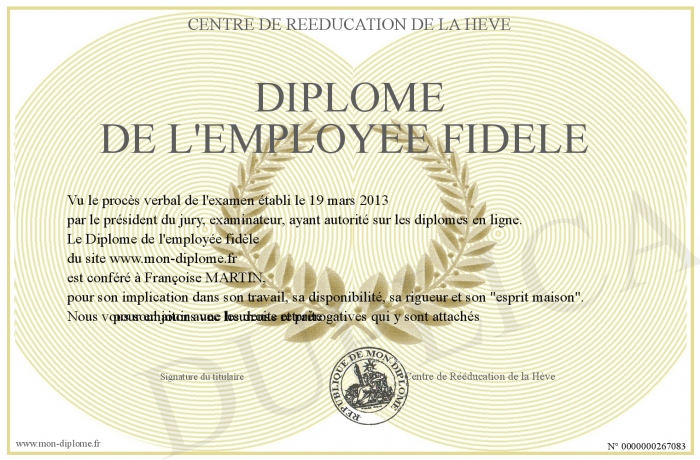 Envoyez par email votre Diplome de l'employée fidèle personalisé