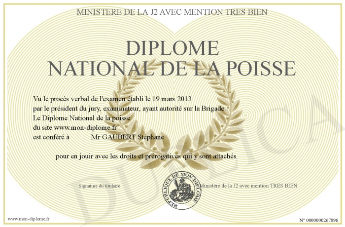 Envoyez par email votre Diplôme National de la poisse personalisé