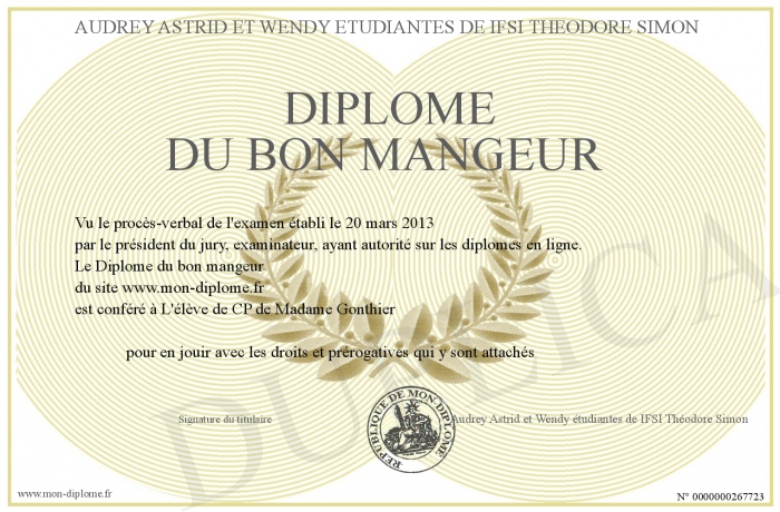 Envoyez par email votre Diplôme du bon mangeur personalisé