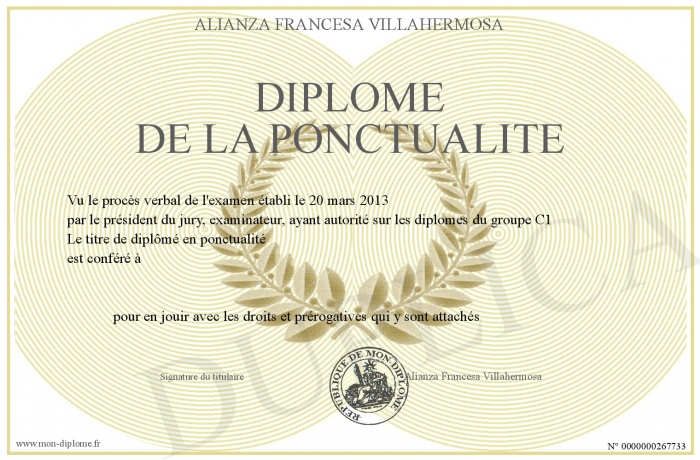 Envoyez par email votre Diplôme de la ponctualité personalisé