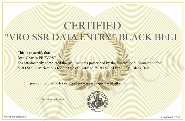 Envoyez par email votre Certified -VRO SSR Data Entry- Black Belt personalisé