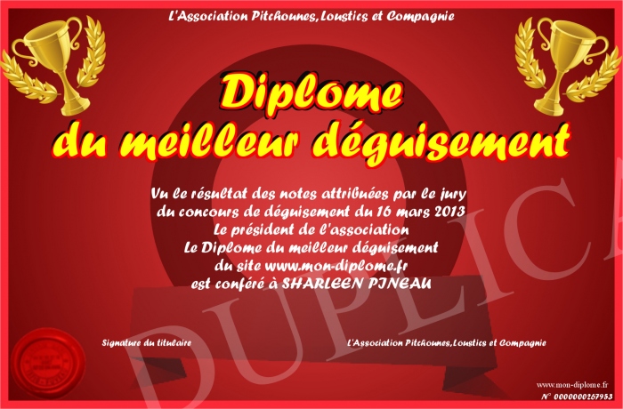 Envoyez par email votre Diplôme du meilleur déguisement personalisé