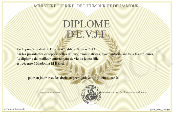 Envoyez par email votre diplome d'E.V.J.F personalisé