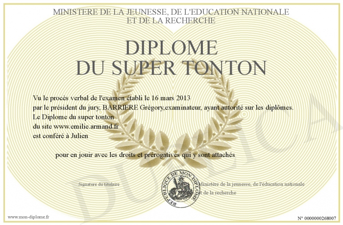 Envoyez par email votre Diplôme du super tonton personalisé