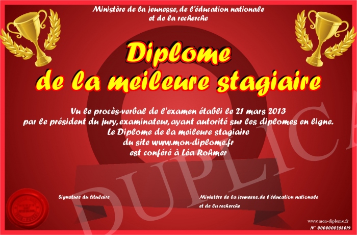 Envoyez par email votre Diplôme de la meileure stagiaire personalisé