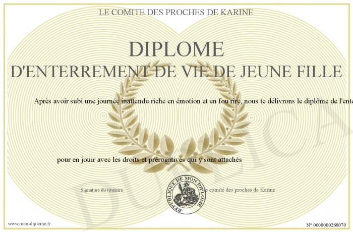 Envoyez par email votre Diplôme d'enterrement de vie de Jeune Fille personalisé