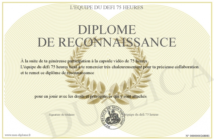 Envoyez par email votre Diplôme de reconnaissance personalisé