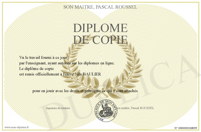 Envoyez par email votre Diplôme de copie personalisé