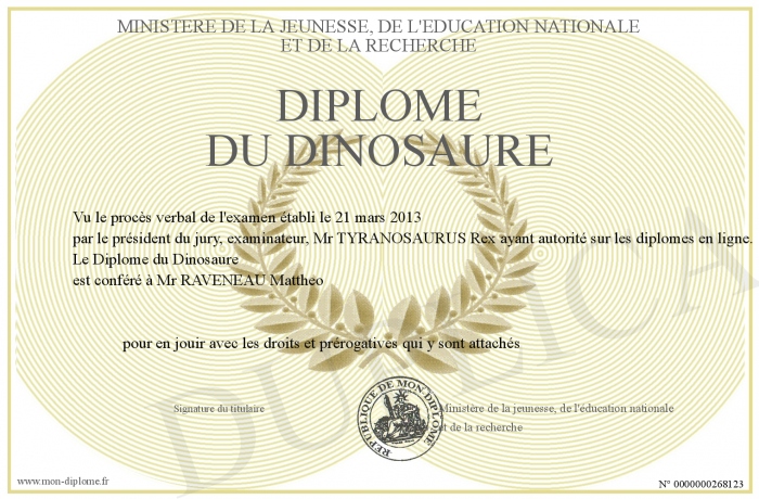 Envoyez par email votre Diplôme du Dinosaure personalisé