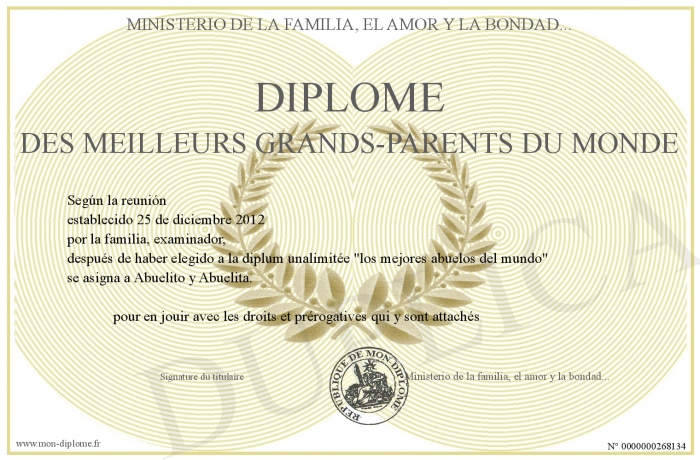 Envoyez par email votre Diplome des meilleurs grands-parents du monde personalisé