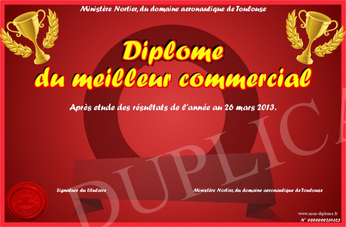 Envoyez par email votre Diplome du meilleur commercial personalisé