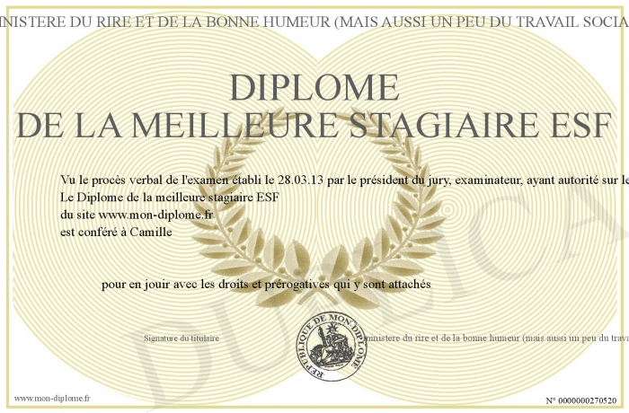 Envoyez par email votre Diplôme de la meilleure stagiaire ESF personalisé