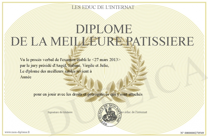 Envoyez par email votre Diplôme de la meilleure patissière personalisé