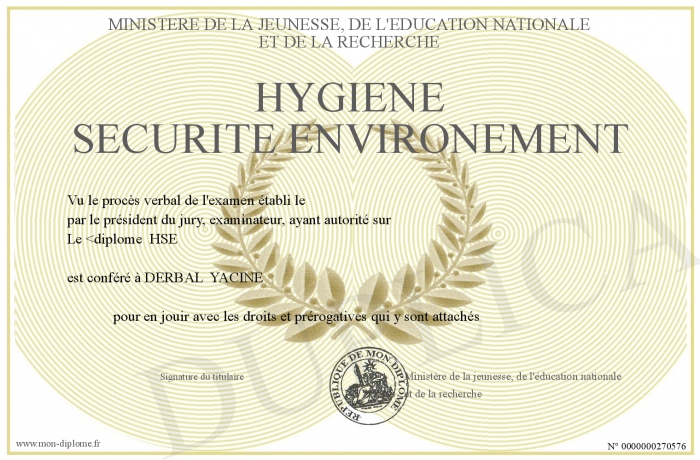 Envoyez par email votre HYGIENE SECURITE ENVIRONEMENT personalisé