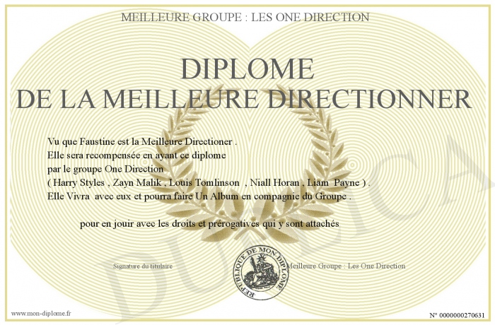 Envoyez par email votre Diplôme de la Meilleure Directionner personalisé