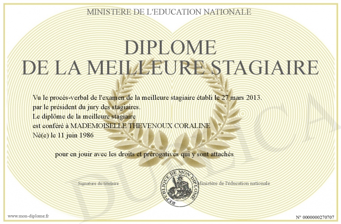 Envoyez par email votre Diplôme de la meilleure stagiaire personalisé