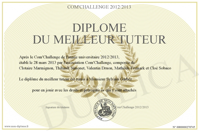 Envoyez par email votre Diplome du meilleur tuteur personalisé