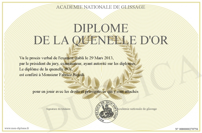 Envoyez par email votre Diplôme de la quenelle d'Or personalisé