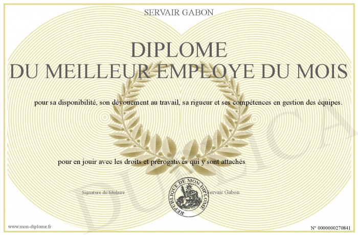 Envoyez par email votre Diplôme du Meilleur Employé du Mois personalisé