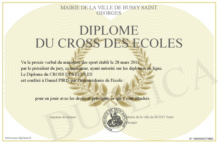 Envoyez par email votre Diplôme du CROSS DES ECOLES personalisé