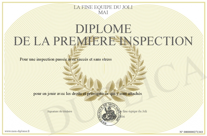 Envoyez par email votre Diplôme de la première inspection personalisé