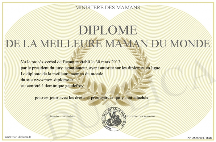 Envoyez par email votre diplome de la meilleure maman du monde personalisé