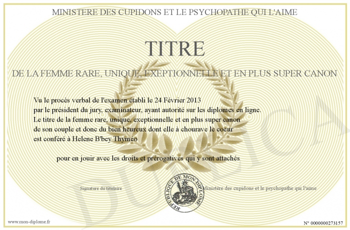 Envoyez par email votre titre de la femme rare, unique, exeptionnelle et en plus super canon personalisé