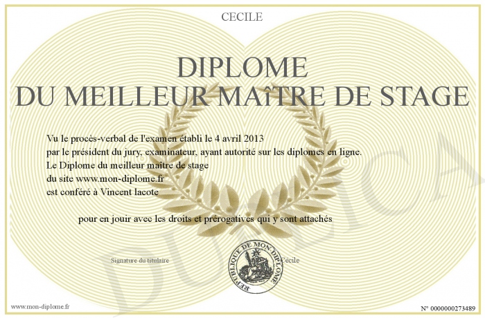 Envoyez par email votre Diplôme du meilleur maître de stage personalisé