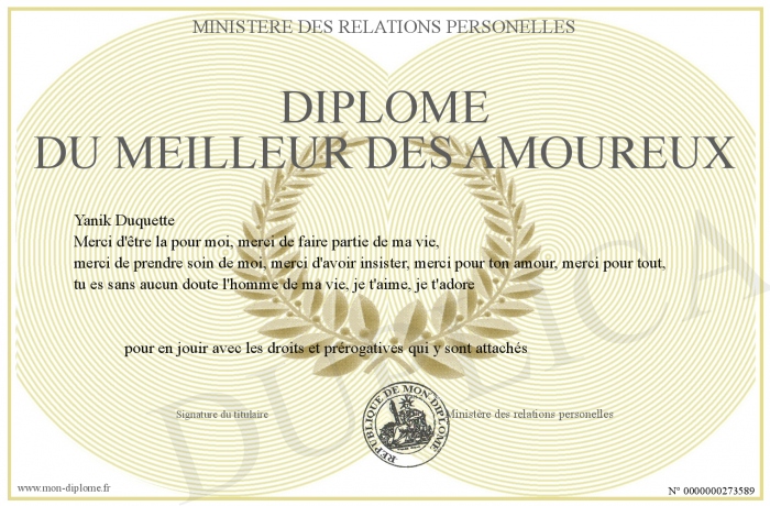 Envoyez par email votre Diplôme du meilleur des amoureux personalisé
