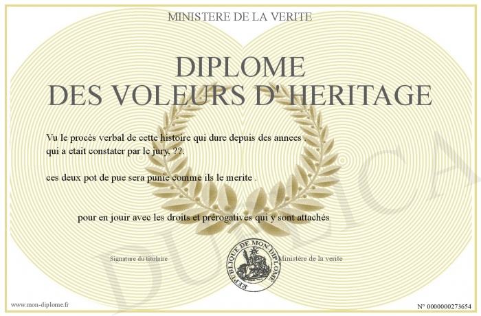 Envoyez par email votre Diplôme des voleurs d' heritage personalisé