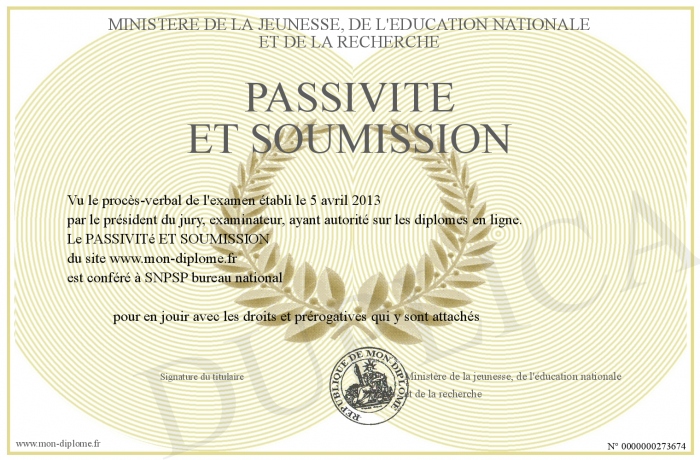 Envoyez par email votre PASSIVITé ET SOUMISSION personalisé