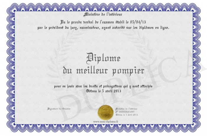 • Diplôme du meilleur pompier