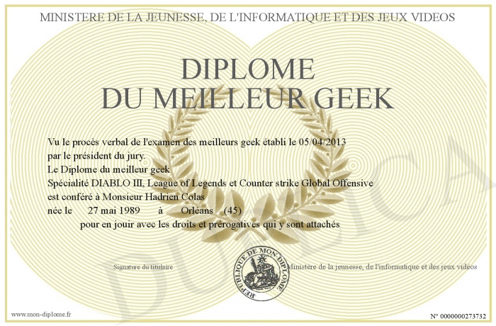 Envoyez par email votre Diplôme du meilleur geek personalisé