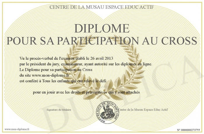 Envoyez par email votre Diplôme pour sa participation au Cross personalisé