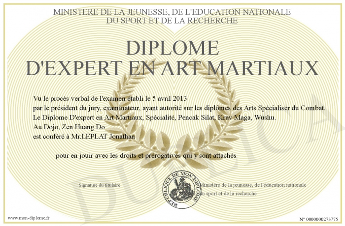 Envoyez par email votre Diplôme D'expert en Art Martiaux personalisé