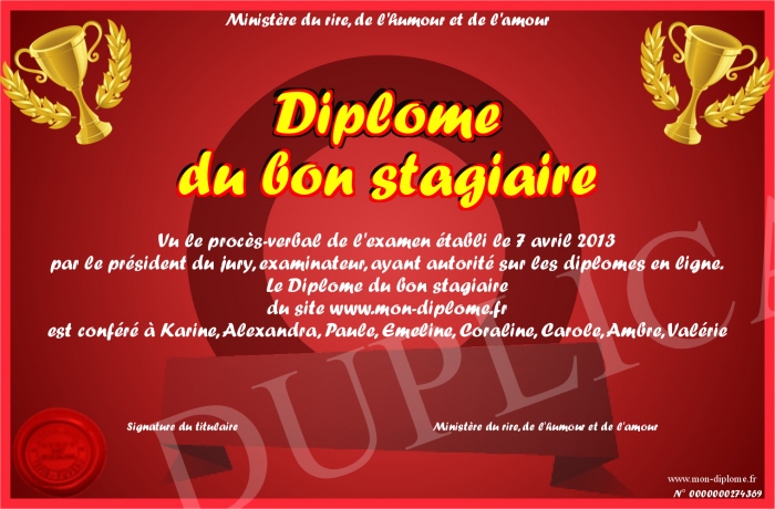 Envoyez par email votre Diplome du bon stagiaire personalisé