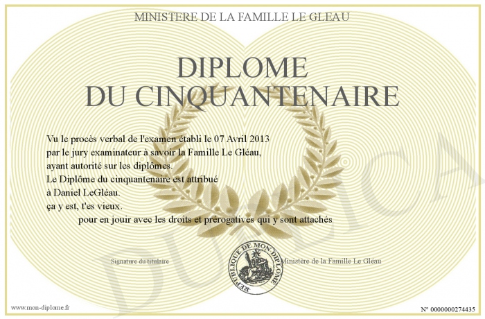 Envoyez par email votre Diplôme du cinquantenaire personalisé