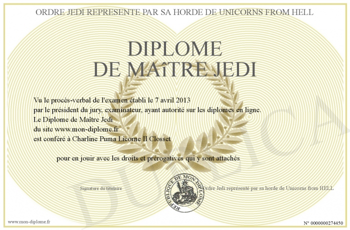 Envoyez par email votre Diplôme de Maître Jedi personalisé