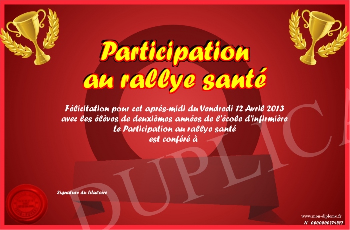 Envoyez par email votre Participation au rallye santé personalisé