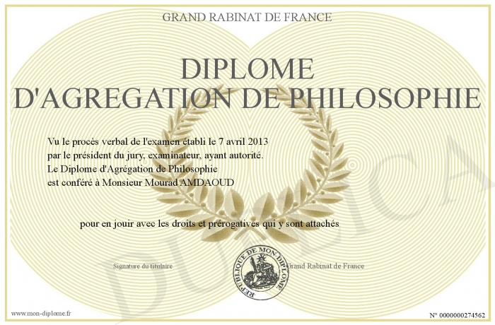 Envoyez par email votre Diplôme d'Agrégation de Philosophie personalisé