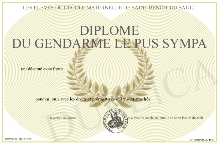 Envoyez par email votre Diplôme du gendarme le pus sympa personalisé